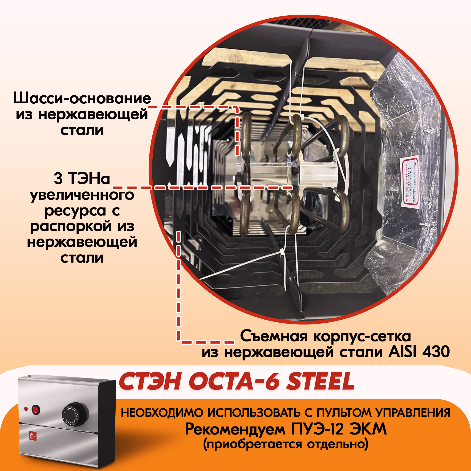 Электрическая каменка СТЭН ЭКМ 6 Octa steel в Таганроге | Доставка по России