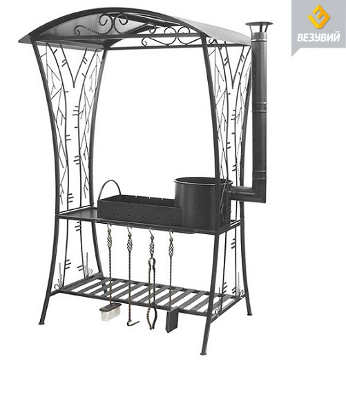 Мангал Везувий «Берёзка» создан в эргономическом дизайне. Особенностью мангала является Мангальная вставка с печью под казан, имеет высокую вытяжную трубу самоварного типа. Дым, выходящий из трубы, не мешает окружающим. Мангал удобен для хранения и транспортировки так как имеет сборно-разборную конструкцию