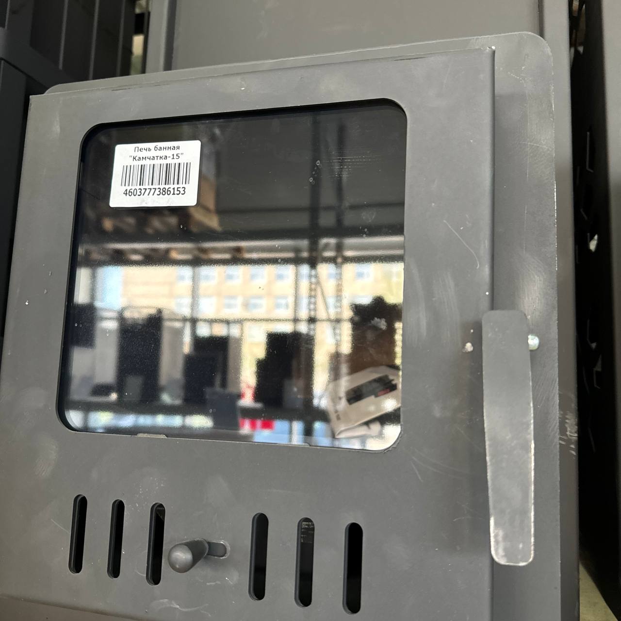 Воздух для сжигания топлива поступает через специальную заслонку в дверке, заслонка оборудована регулятором для контроля интенсивности горения.