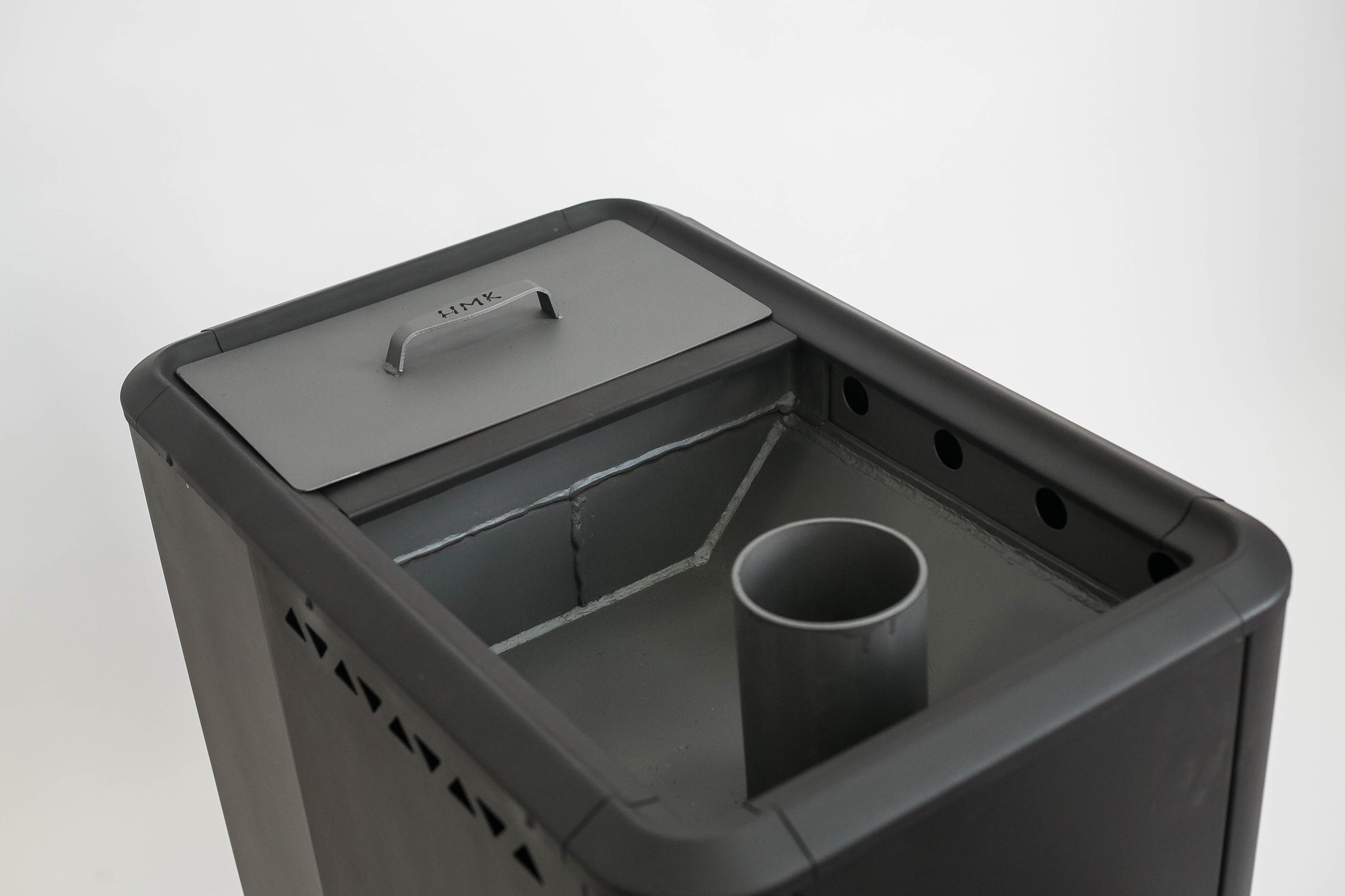 Компактная, надежная конструкция обеспечивает отличный пар в бане площадью до 20 метров. Открытая каменка вмешает 50-60 кг камней. Топится углем или дровами. Встроеннный бак обеспечивает необходимое для купания количество горячей воды.