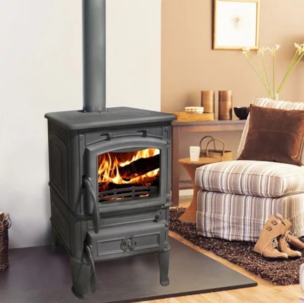 Печь выполнена по особой системе защиты стекол. Благодаря этому стекло топочной дверцы не запотевает, а, значит, ее владелец может любоваться живым огнем.