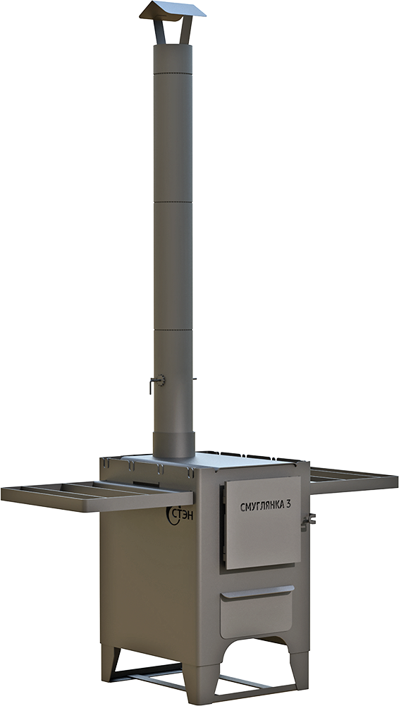 Печи комплектуются разборным дымоходом и съёмными полками