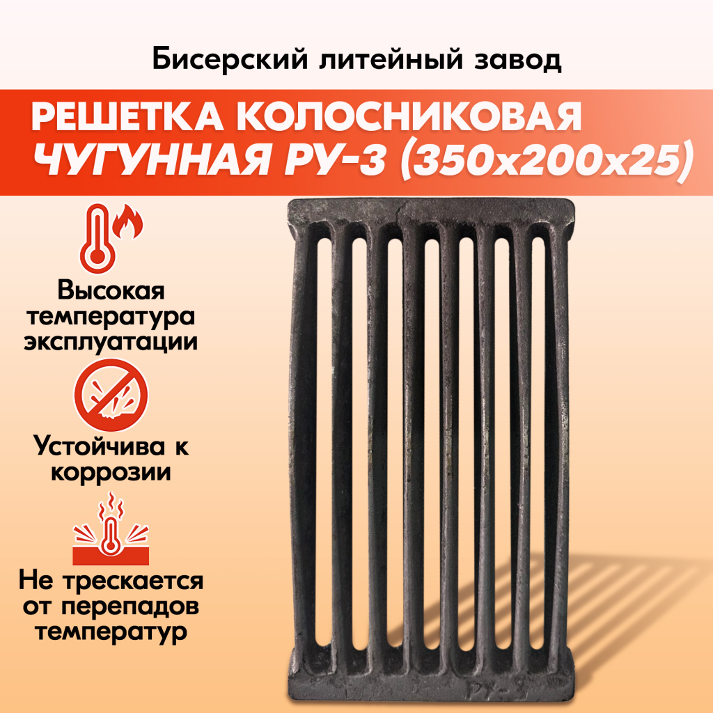 Обращаем внимание, что колосниковая решетка из чугуна РУ-7 — это 1/2 колосниковой решетки для угля РУ-2 и предназначена для укладки с решеткой РУ-2 в увеличенные по ширине топки печей размером 300х300 мм и больше.