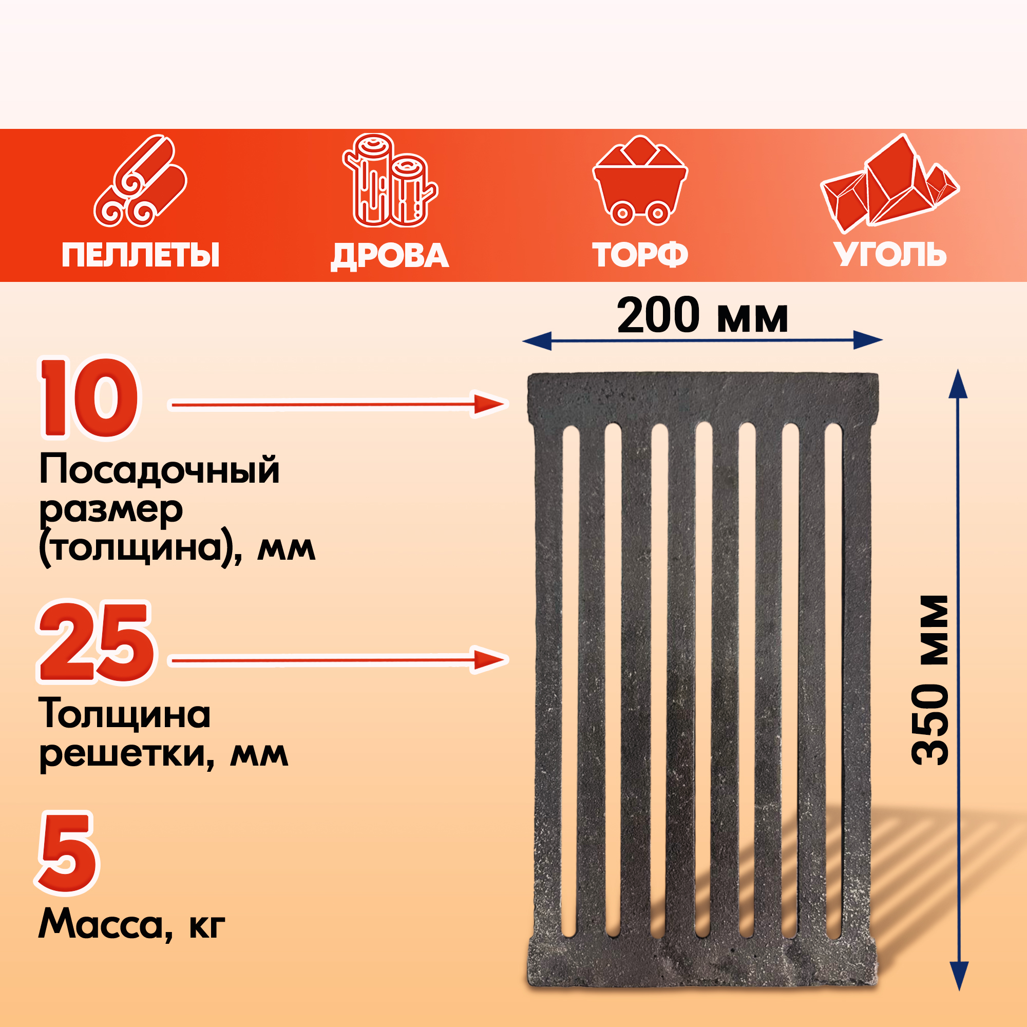 Модели колосниковых решеток для дров от Бисерского литейного завода также пригодны к топке торфом или брикетами из опилок.
