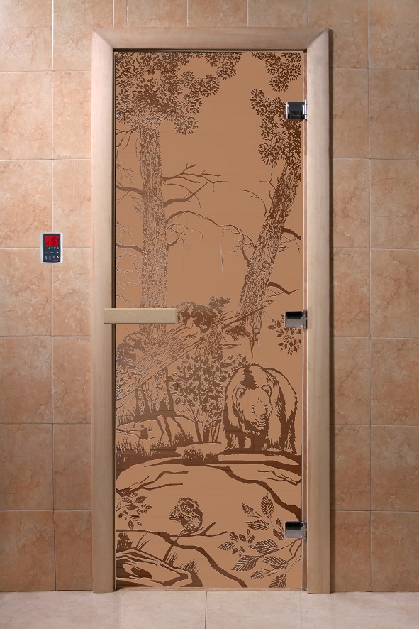 Дверь для сауны "Мишки в лесу" (матовая) 190х70 в Таганроге | Доставка по России